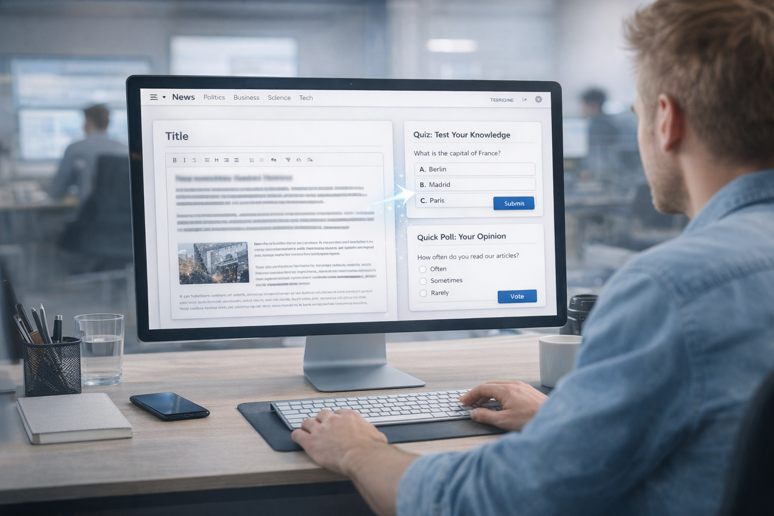 Quizzes and polls embedded directly within editorial content
